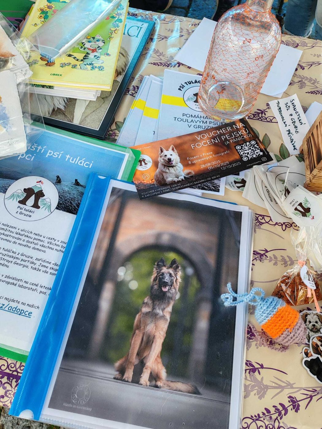 Pokud jste neměli možnost se za námi zastavit na Náplavce, můžete si za dobrovolný příspěvek (minimálně 300 Kč) tento poukaz v hodnotě 1 200 Kč na 8 profesionálních fotografií od nás koupit. Stačí nám napsat na naše sociální sítě, nebo na info@psitulacizgruzie.cz. Ukázky toho, jak můžou takové fotky vašich mazlíčků vypadat, podívejte se na www.fotkyodsarky.webnode.cz.